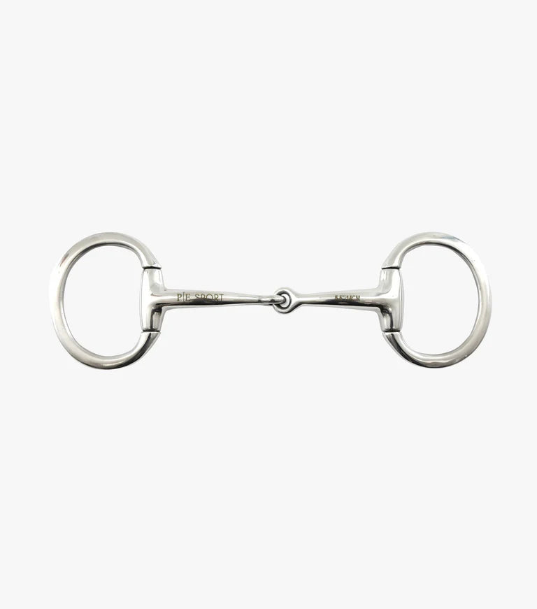 This is a good choice for horses with a small mouth or a large tongue because the slight curve of the mouthpiece reduces the nutcracker action and helps to prevent the bit from coming into contact with the palate. Fixed Eggbutt cheeks help to reduce vibrations down the reins, giving a more stable feeling to the horse. A single joint puts pressure on the lips and bars of the mouth. The thinner mouthpiece gives a slightly strong action but is still mild enough to be used by novice riders.