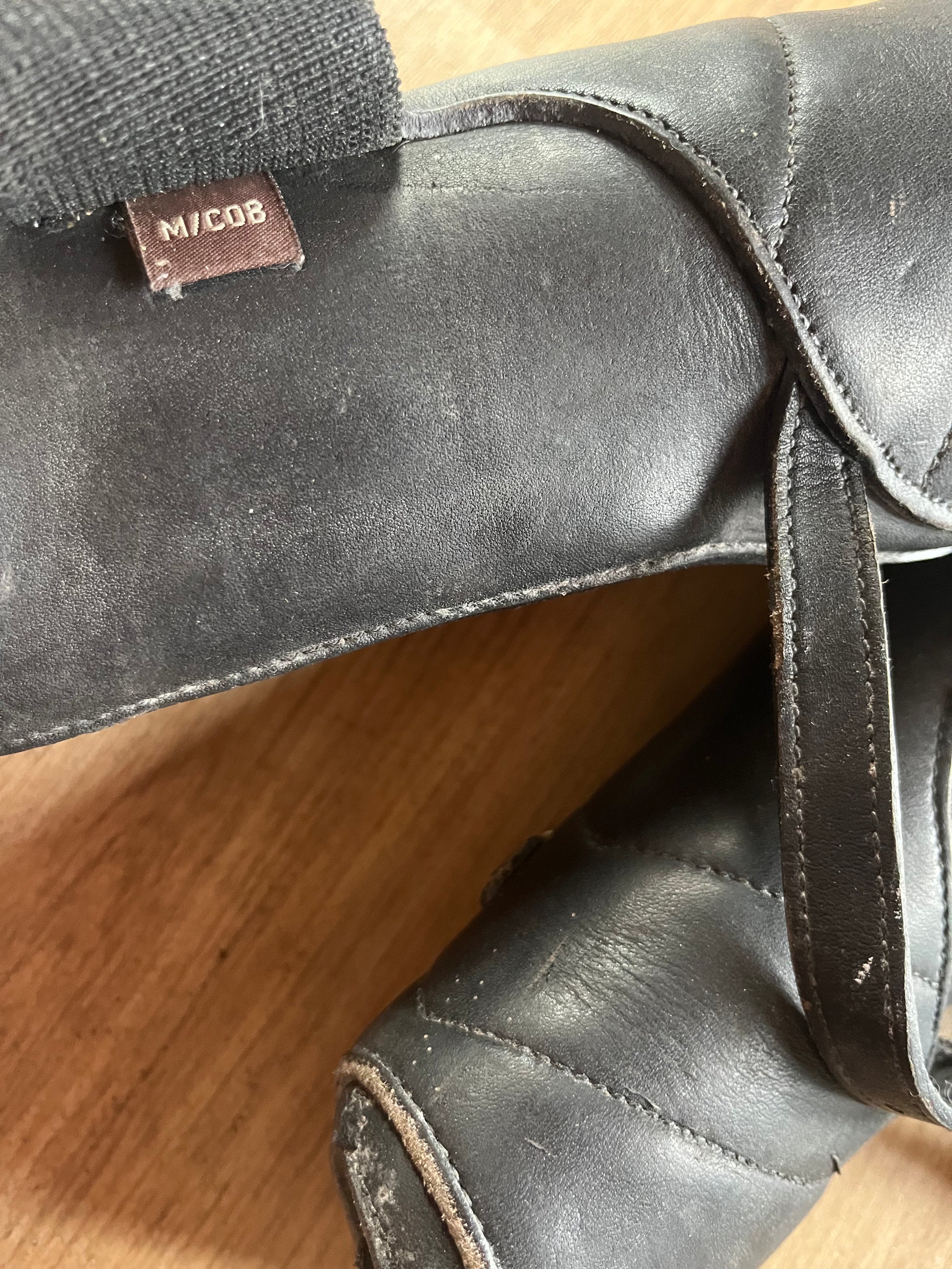 Mark Todd size cob tendon boots black . Used preloved condition does have some rub marks . Elasticated strap and buckle strap .